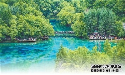 游客在九寨沟景区五花海游览。 |