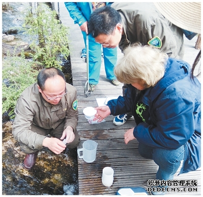克罗地亚普湖公园保护与可持续利用部主任卡齐米尔·米库利尼奇在中国黄龙国家自然保护区采集水样。 |